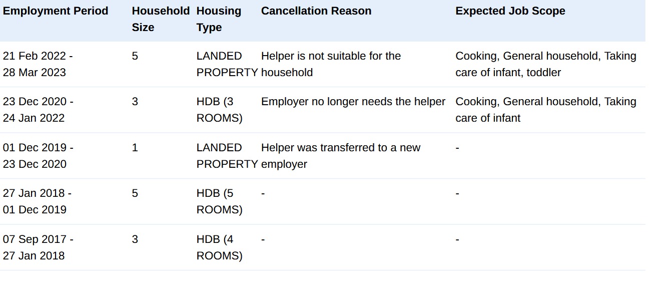 * Take note that this information is generated automatically and should only be taken as reference and not to be solely relied on when hiring a maid.